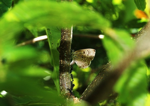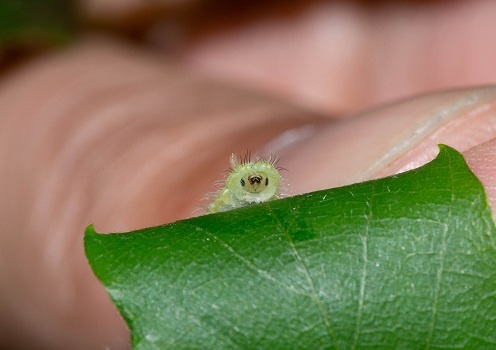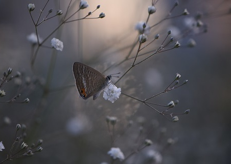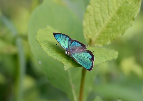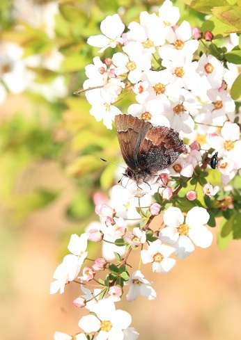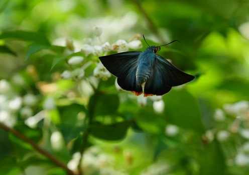 アオバセセリは、ビロードのような毛が全身を覆い、その丸々とした体形と、愛嬌のある目や頭部に表情があって、クチクラの外殻をまとった昆虫というよりは、まるで哺乳類の小動物みたいな愛らしさがある。5月初旬、渓谷を白く彩るミツバウツギが満開になるころ、アオバセセリたちがジェット機のようなスピードで、花から花へと飛び移る姿を映すのが毎年の楽しみである。