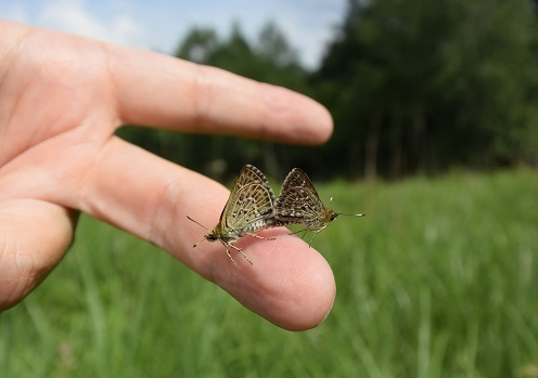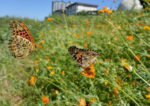タカネキマダラセセリの空中戦 撮影:鶴藤俊和