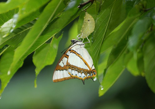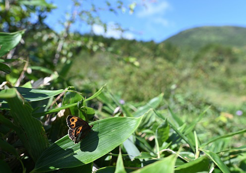 8月中旬の台風の後、迷蝶が時々記録される場所に行ってみると2頭のリュウキュウムラサキを観察する事が出来た。1頭は傷んでいたがもう1頭は割と新鮮な雄であった。これらの個体は7月ぐらいに飛んで来た個体の子供だろうと思った。気温が高いので次の世代が見られるかもと期待して10月上旬に再訪してみたら裏面白帯の発達した個体に会うことが出来た。