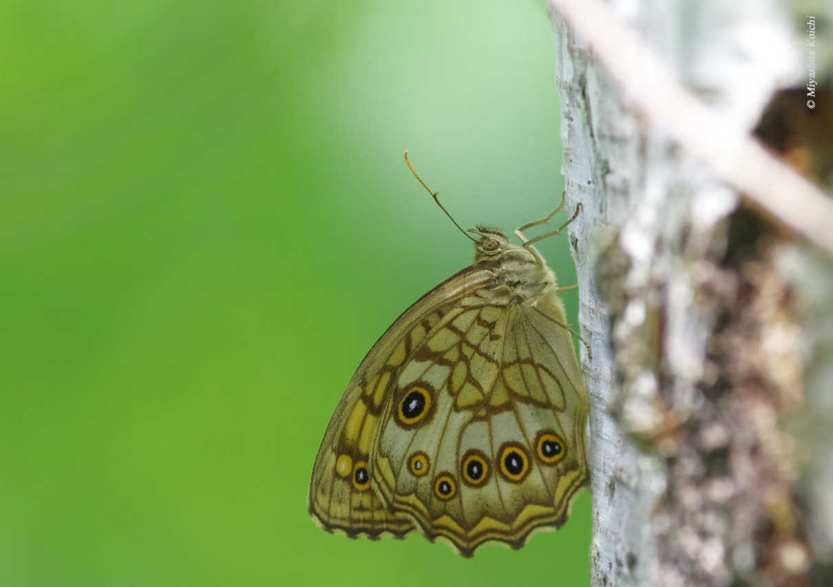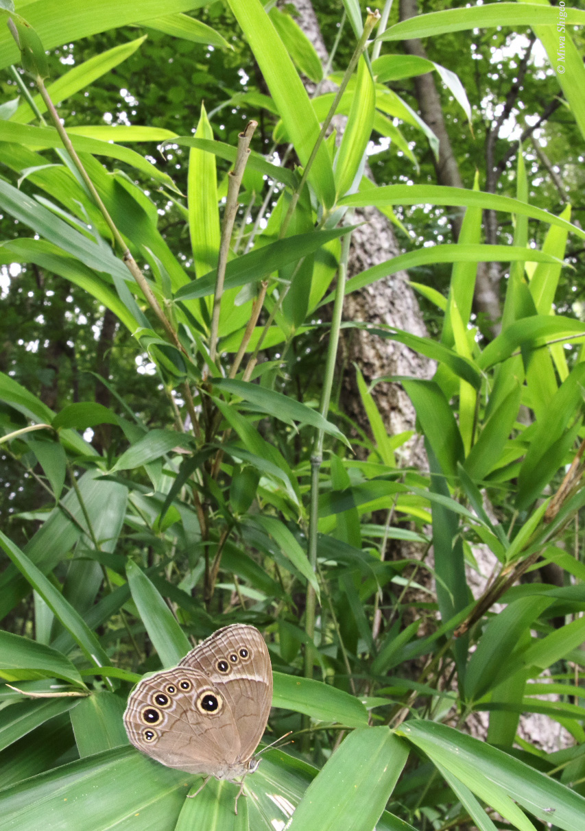 地味なチョウだが、前翅裏面の3つ以上の眼状紋を見ると私の胸は大いにときめく。