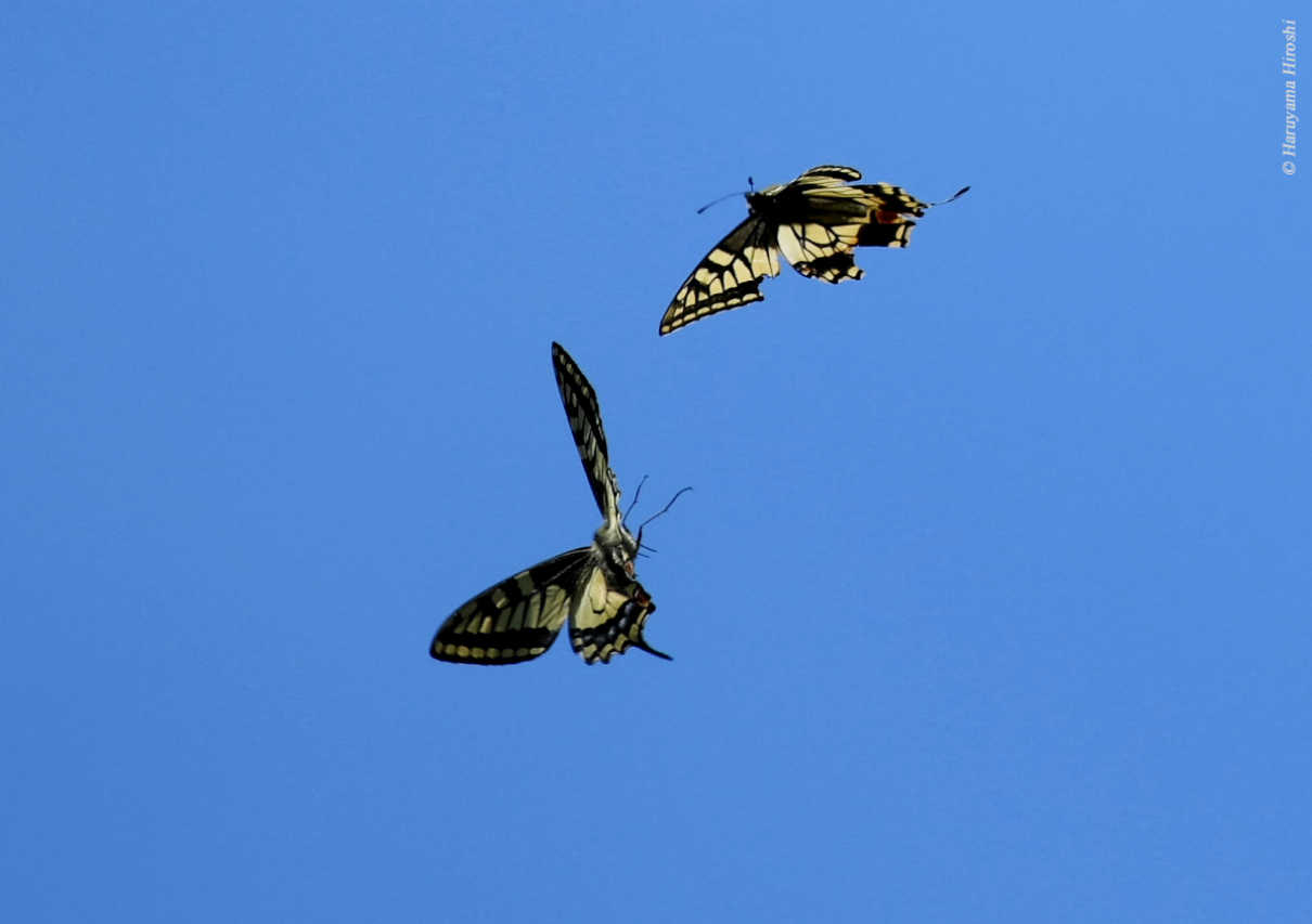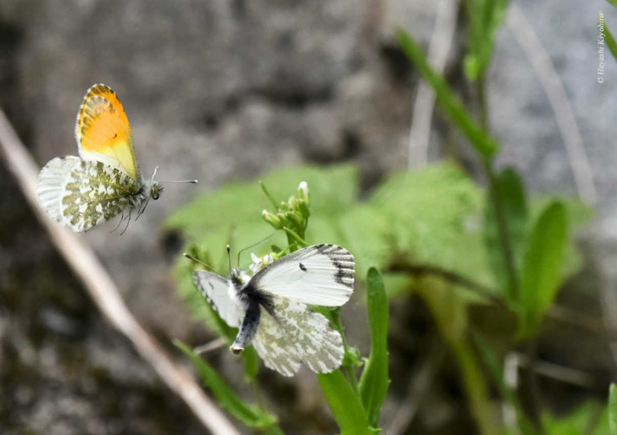 クモマツマキチョウカップル飛翔 撮影:林清弘
