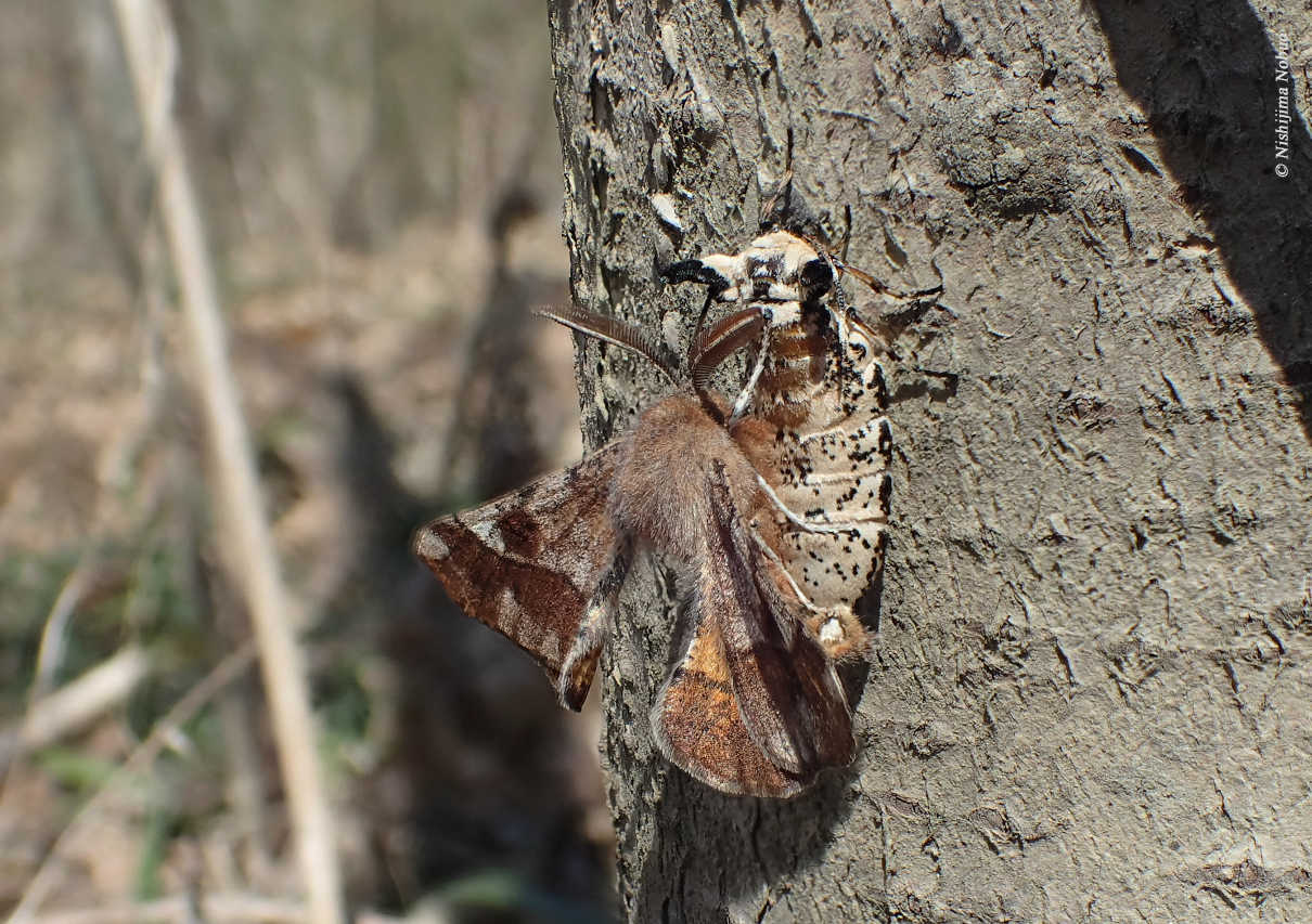 15時26分撮影。蛹化前で、黄緑色から深緑色になった幼虫は、蛹化場所に適した食樹のクヌギの樹皮に潜り込もうとする。お気に入りの場所が見付かるまで、何度も繰り返していた。これだから蛹の発見難易度は高い。10年定点観察を続けて、蛹を見つけたのは2回だけだ。