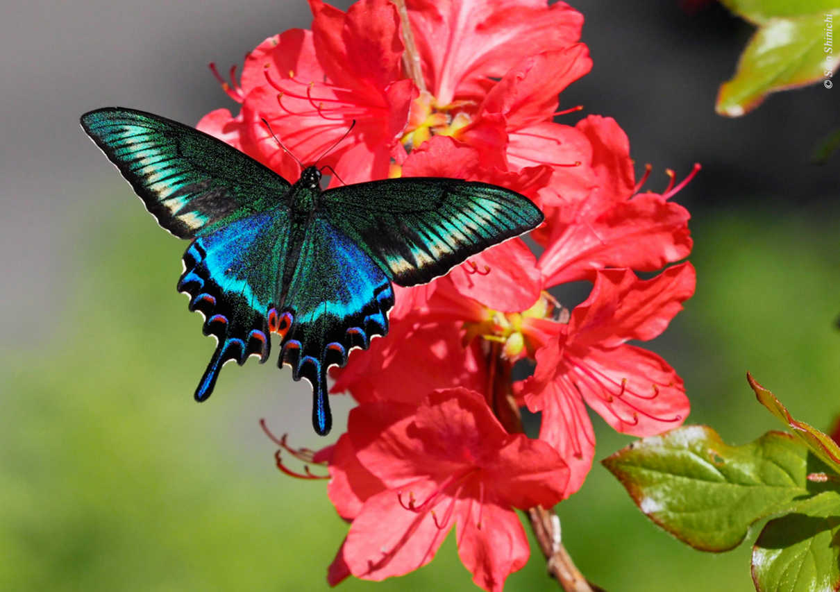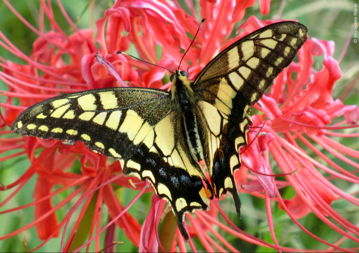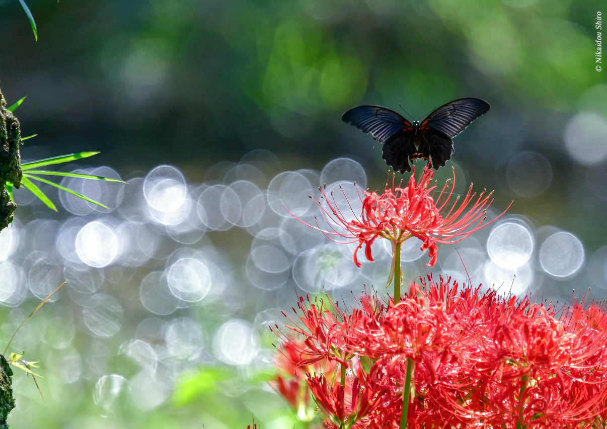 煌めく彼岸花とナガサキアゲハ 撮影:二階堂史朗