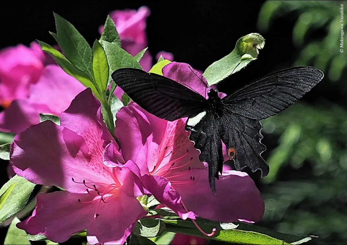 オスに引けを取らないくらいミヤマカラスアゲハのメスは美しい。一方で、いざ撮影しようと思ってもチャンスはなかなか訪れないのである。このショットは昨年撮影したもので、クリンソウの撮影をしていたら思いがけず吸蜜に訪れたものである。