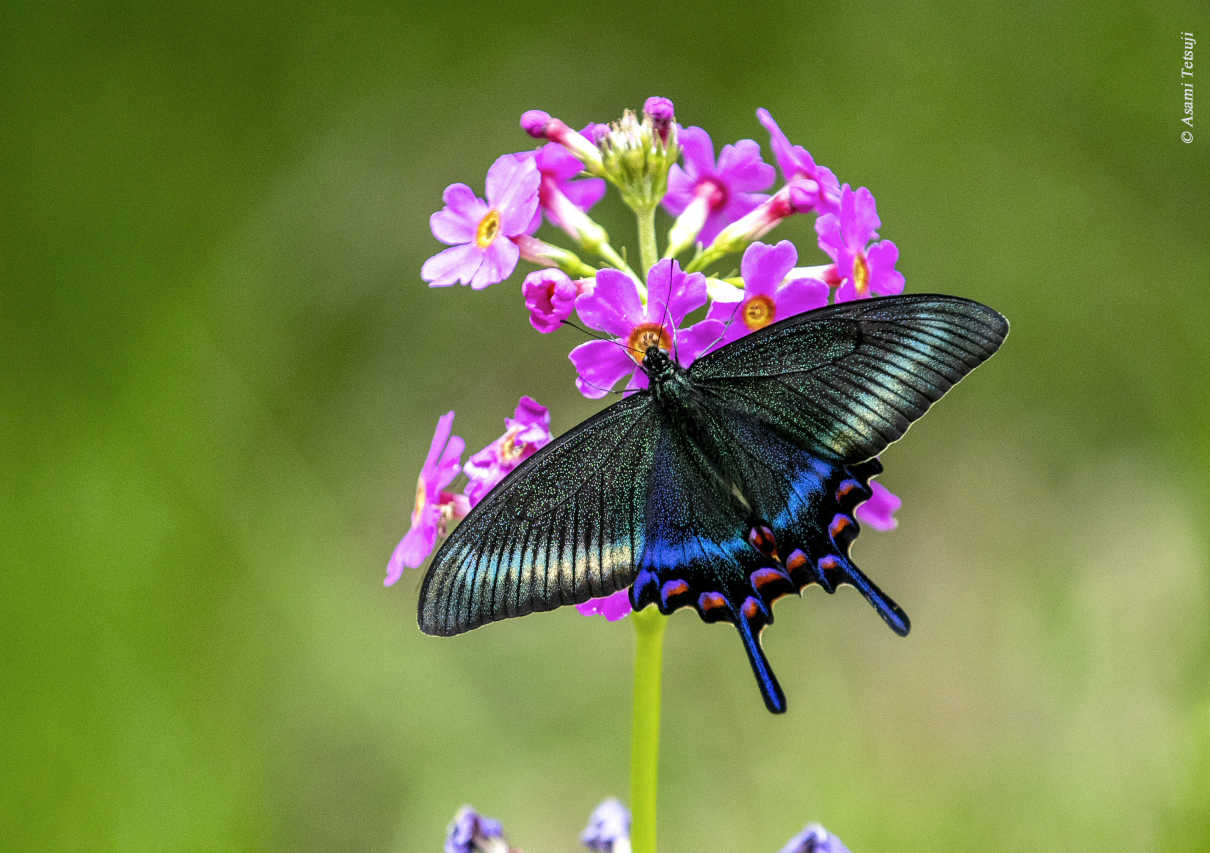 ミヤマカラスアゲハとクリンソウ 撮影:浅見哲司