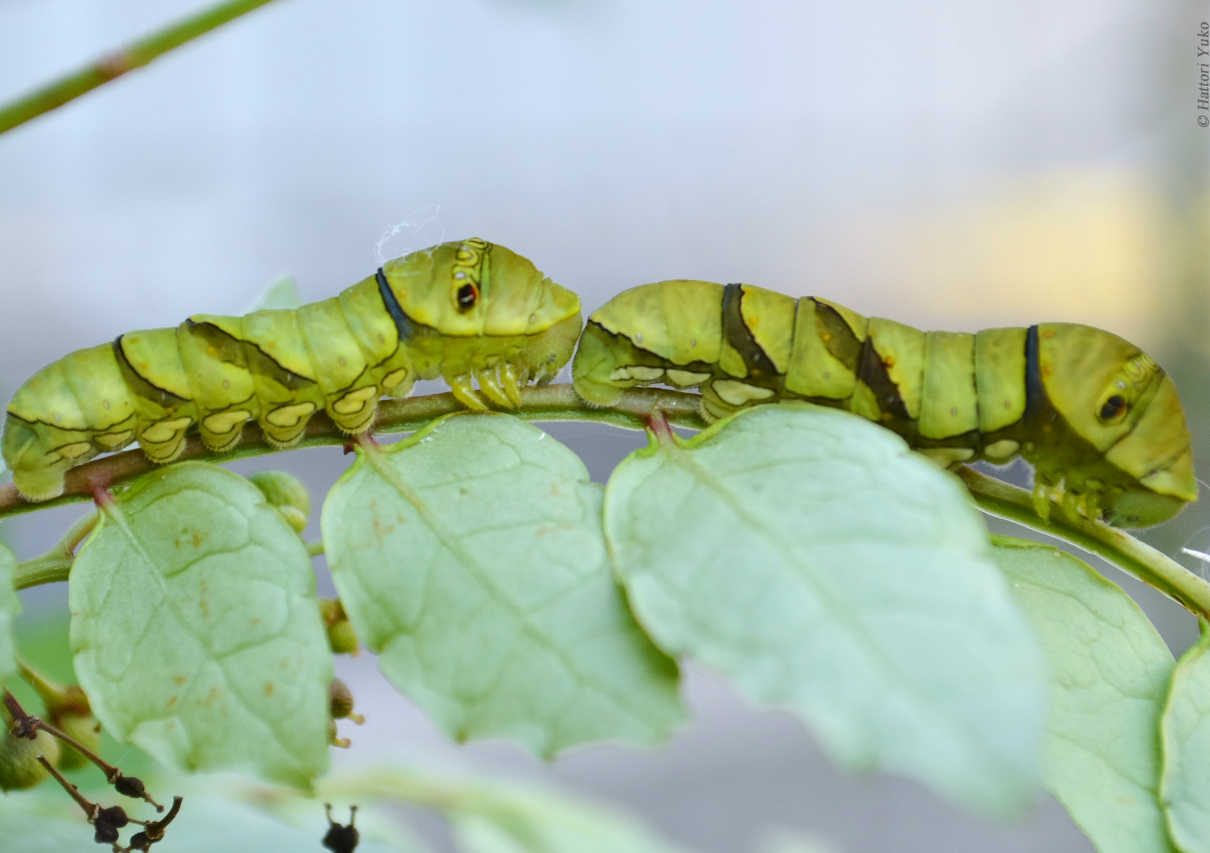 毎年、我が家の柚子の木で生まれるアゲハの子供たち。柚子の木が若いので、子供たちが蛹になるために姿を消すころには、木はいつも丸坊主になっている。今年は特にアゲハの飛来が多く、ミカン、ポンカン、サンショウの苗木を買い足したが、やっぱりすべて丸坊主にされた。いくら見ていても飽きないかわいい子たちである。