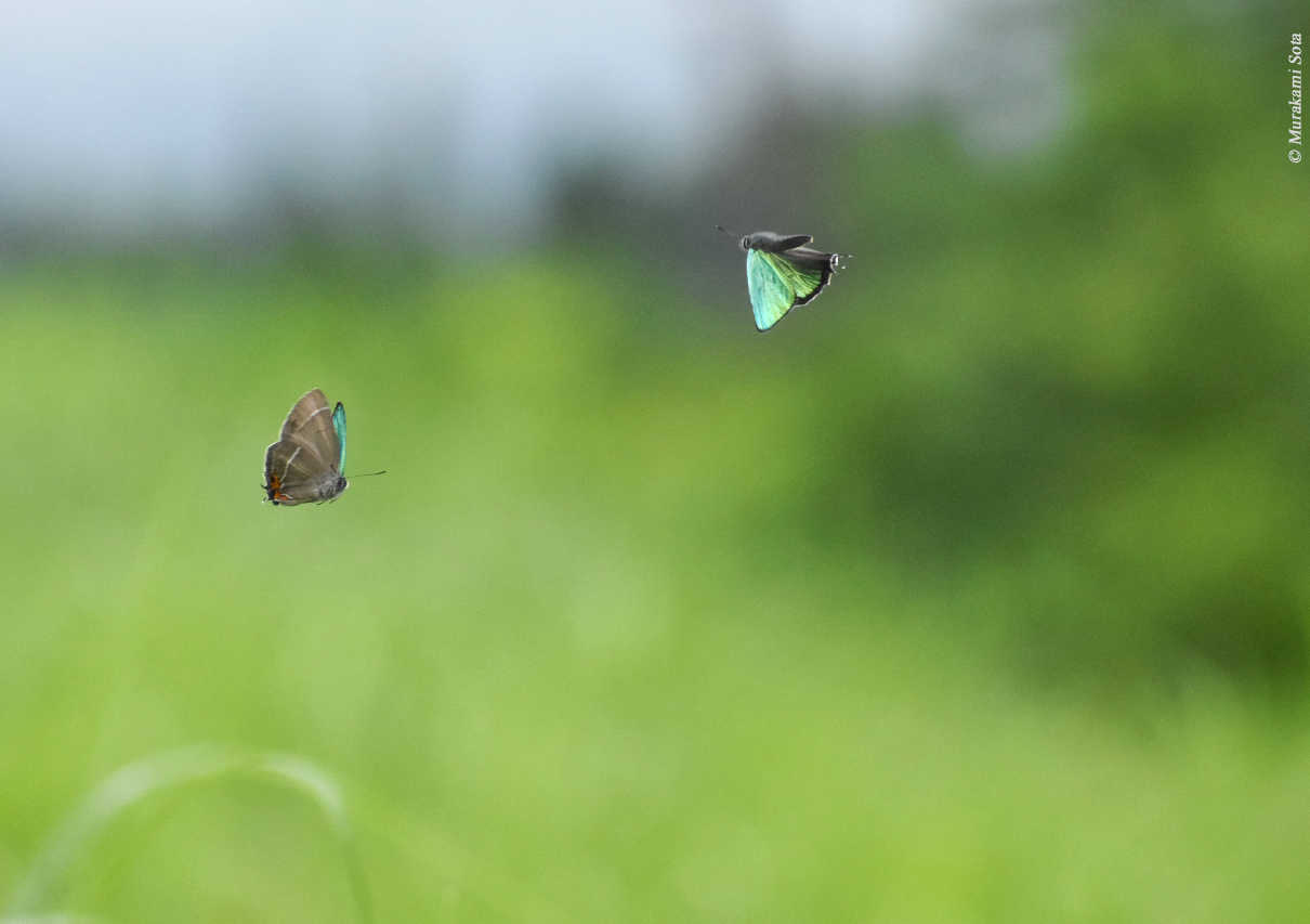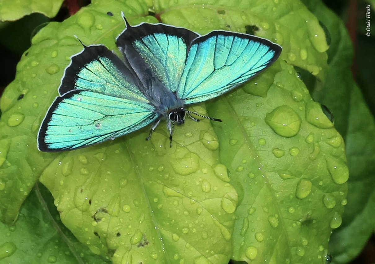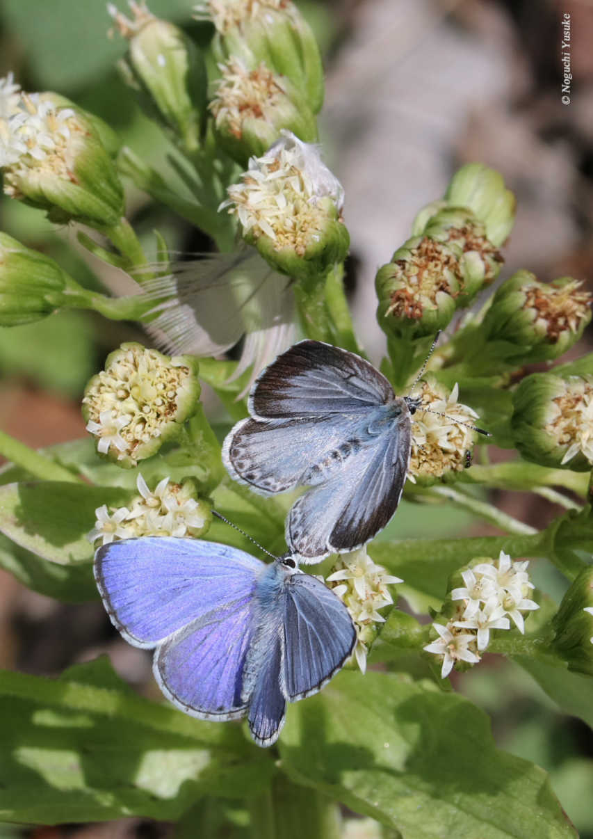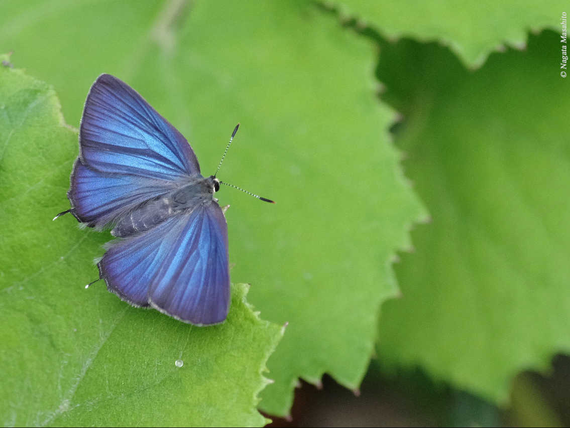 青く光るクロシジミのオス 撮影:渡邊通人