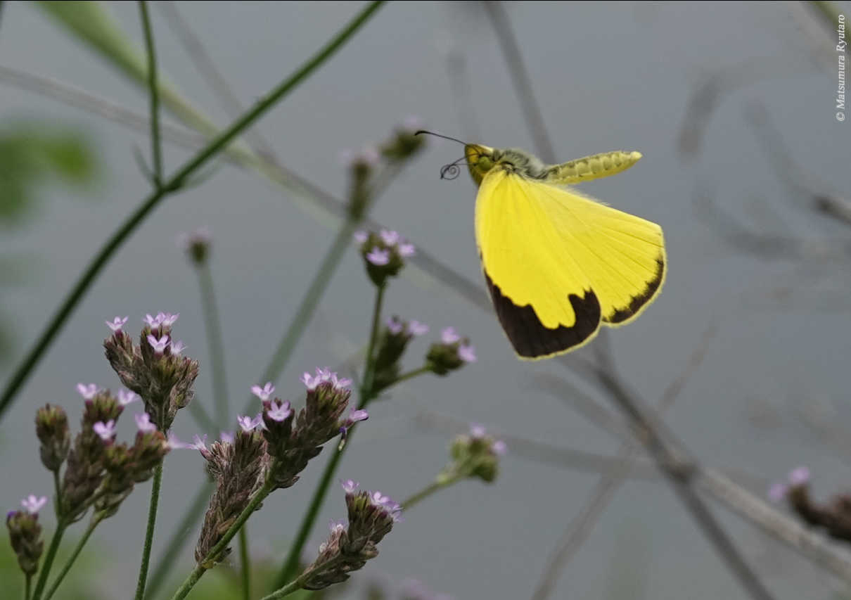 写真中央、二頭のツマグロキチョウは、関東地方では栃木県の一部を除くと個体数が少なく絶滅が危惧されるチョウです。この秋型は、裏翅は淡い地色に複数の黒い線が入り、対して表翅は黄色と黒色の模様が鮮やかで、意匠的にも素敵です。また秋型は、成虫で越冬します。写真両端のキタキチョウは、関東地方各地に生息しています。個体数が多いので、地味なイメージのチョウです。但し、雄の表翅の黄色の輝きは素晴らしく、その美しさはツマグロキチョウに遜色ありません。秋型は同じく成虫越冬するものの、私の節穴のような眼では探すのは難しいです。