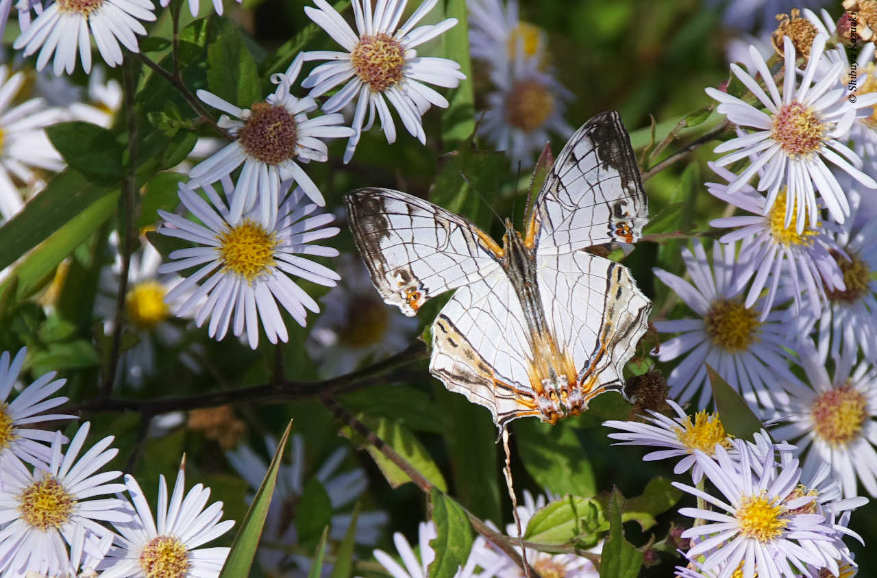 そのようなチョウが、目立つと思われる白い花の中で一生懸命吸蜜をしている。無事に世代が繋がることを祈らずにはいられない。