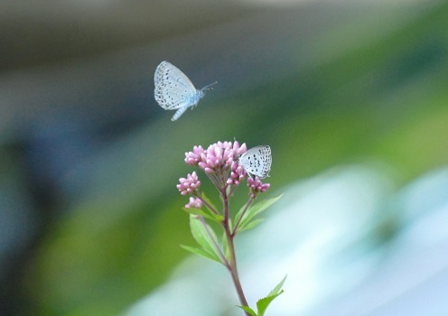 タカネキマダラセセリの空中戦 撮影:鶴藤俊和