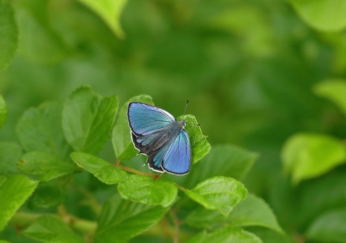 アオバセセリは、ビロードのような毛が全身を覆い、その丸々とした体形と、愛嬌のある目や頭部に表情があって、クチクラの外殻をまとった昆虫というよりは、まるで哺乳類の小動物みたいな愛らしさがある。5月初旬、渓谷を白く彩るミツバウツギが満開になるころ、アオバセセリたちがジェット機のようなスピードで、花から花へと飛び移る姿を映すのが毎年の楽しみである。