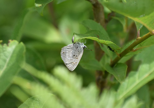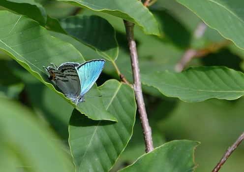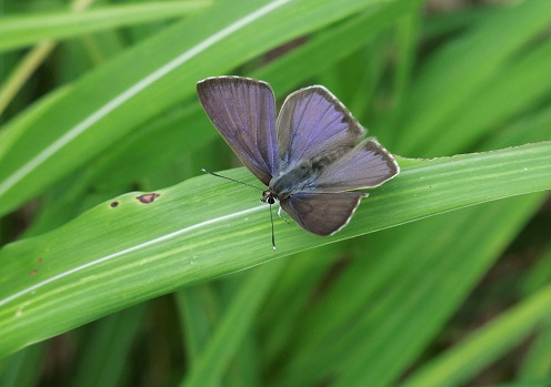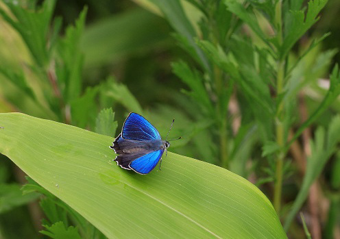 早朝、下草に降りたハヤシミドリシジミが静かに翅を開く。その瞬間、眼を疑った。まるでモルフォのような深いブルーの輝き。羽化直後で、鱗粉がねていた為であろうか。ultramarinusの学名が伊達ではないことを証明しているようであった。