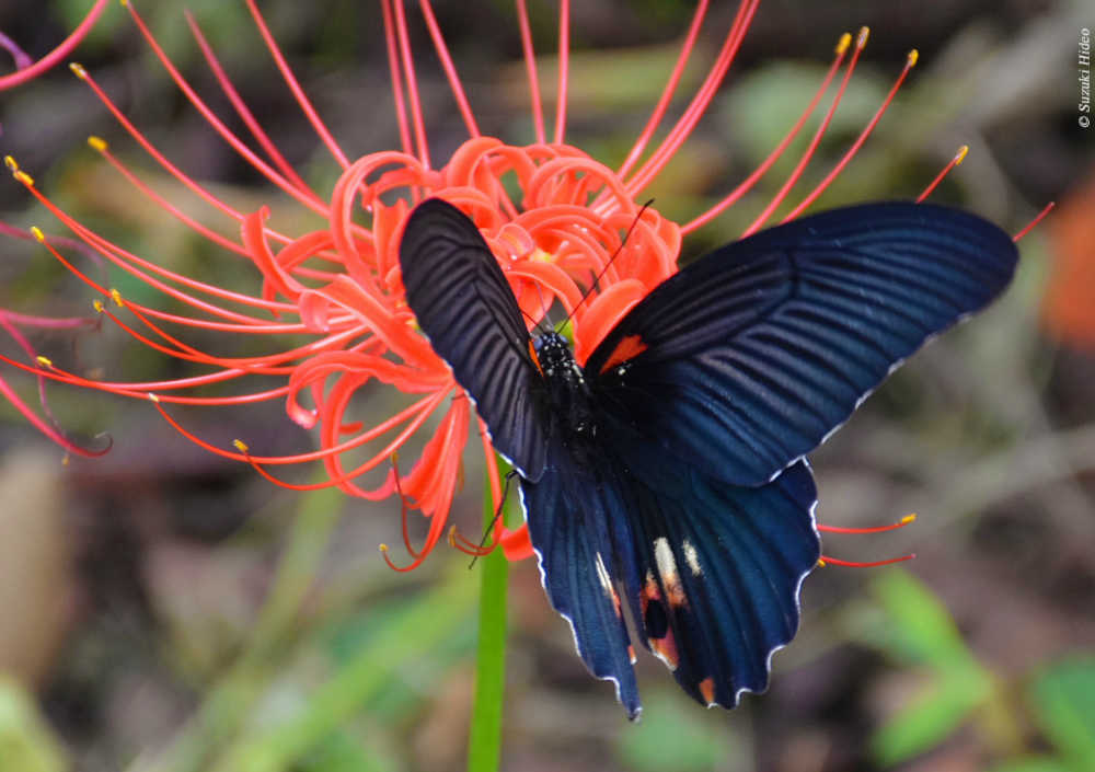 煌めく彼岸花とナガサキアゲハ 撮影:二階堂史朗
