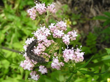 カソコソウとウスイロヒョウモンモドキの終齢幼虫