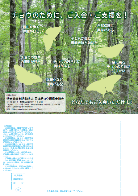 郵便振替口座 加入者名「特定非営利活動法人 日本チョウ類保全協会」